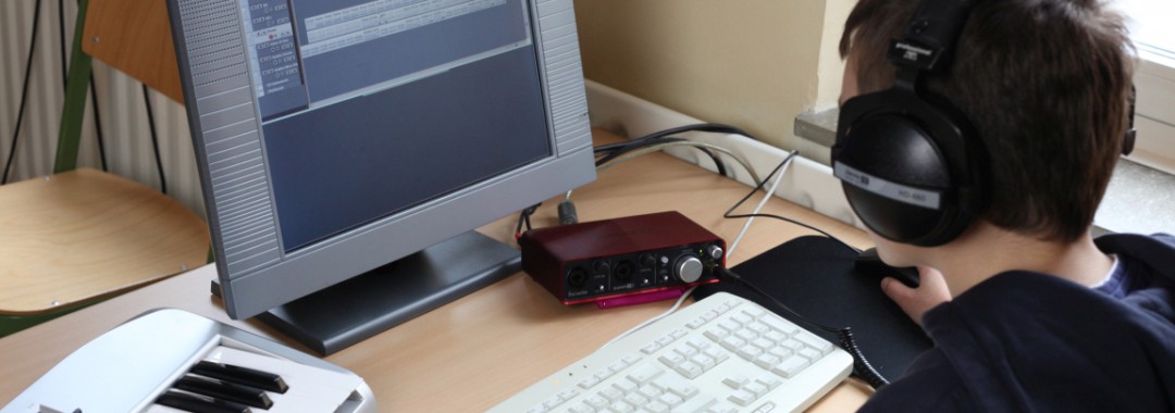 Dank einer Spende des VDS (Verband Sonderpädagogik e.V.) haben wir nun die Möglichkeit, mithilfe eines Computers Musikaufnahmen zu machen. Mit dem Geld konnte ein Interface und die entsprechende Software angeschafft werden, wodurch Instrumente oder Gesang auf dem Computer gespeichert und dort weiter bearbeitet werden können.