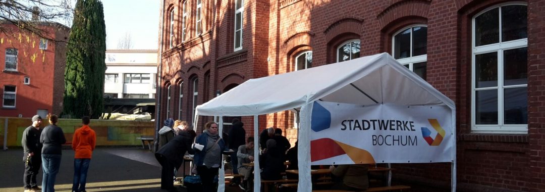 Wie schon im letzten Jahr hat die Mansfeld-Schule auch dieses Jahr Schüler, Eltern und Freunde zum Wintergrillen eingeladen. Am Tag vor den Halbjahreszeugnissen war nach der dritten Stunde Schulschluss und auf dem Schulhof wurde für die zahlreich erschienenen Gäste der Grill angefeuert. Neben heißen Würstchen gab es viele selbstgemachte Salate, die von den Eltern beigesteuert wurden, wofür wir uns hier noch einmal herzlich bedanken wollen. Gespeist wurde vorwiegend im Indoor-Raum, wo die Schulband bei einem kleinen Auftritt mit zwei eigenen Songs für musikalische Abwechslung sorgte. In den angrenzenden Klassenräumen fanden ein Kicker- und ein Tischtennis-Turnier statt, an denen viele Schülerinnen und Schülern teilnahmen. Insgesamt war das Wintergrillen wieder eine rundum gelungene Veranstaltung und ein schöner Anlass, um beim gemeinsamen Essen ungezwungen ins Gespräch zu kommen.