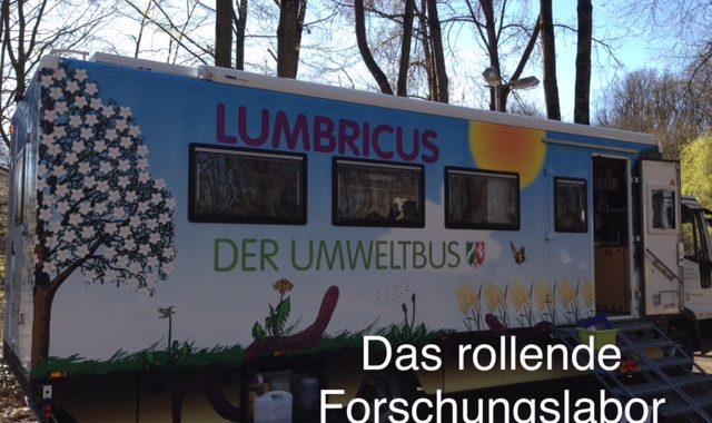 Am Montag, den 27.03. 2017 verbrachten wir – die Schüler der 5. Klasse – unseren Unterricht im nahe gelegenen Laerholzwald in Bochum Querenburg. Dort empfing uns der Umweltbus ‚LUMBRICUS’ der Natur- und Umweltschutz-Akademie Nordrhein-Westfalen (NUA). Im rollenden Klassenzimmer mit Forschungslabor hatten wir die Gelegenheit, den Waldboden und in ihm lebende Tiere und Organismen mit Hilfe von Binokularen (eine Art Mikroskop) zu untersuchen. Wir machten viele erstaunliche Entdeckungen und machten auch eine Bodenprobe mit einem Erdspieß. Wir erfuhren von Herrn Schruck, dass bis sich 1 cm Waldboden entwickelt, mehr als 100 Jahre vergehen.