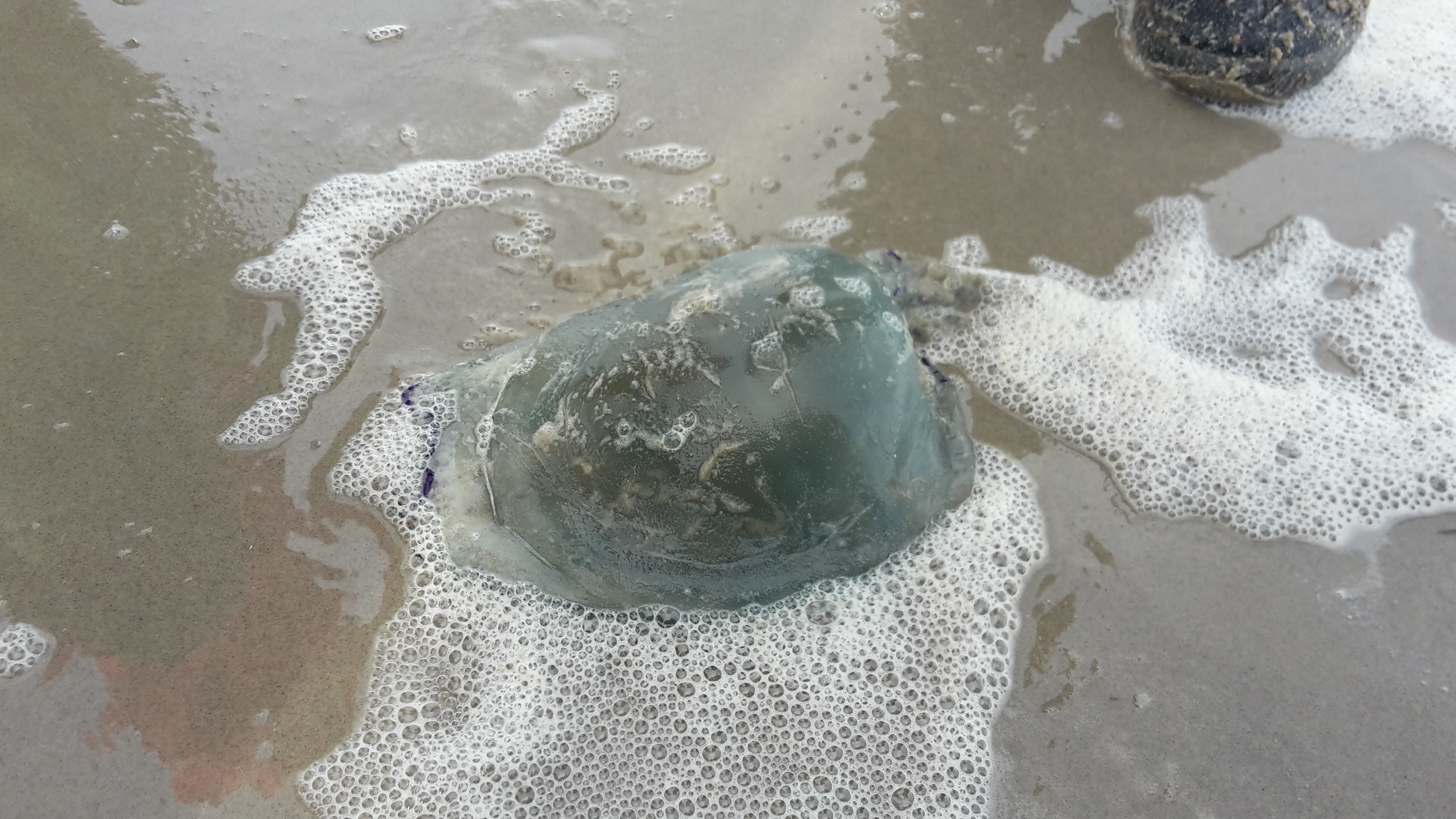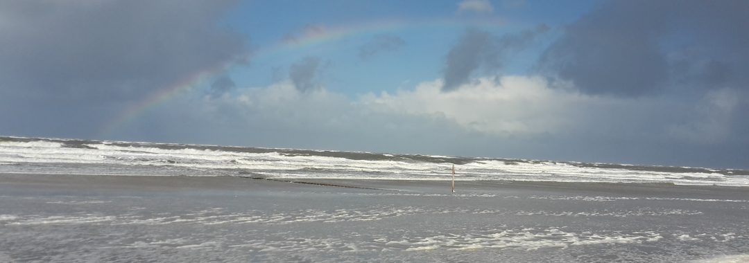 Diesmal wurde sogar eine neue Quallenart durch unsere Gruppe entdeckt: Die blaue Wurzelmundqualle. Sie ist bläulich, für Menschen ungefährlich und hat auch den Namen „Blumenkohlqualle“. Am Strand verendet, ähnelt sie allerdings eher einem Wackelpudding (siehe Foto). Darüber hinaus wurde das Promenadensegeln mit dem Fahrrad und reichlich Rückenwind als neue Sportart erfunden und erfolgreich umgesetzt. Als Belohnung hierfür gab es im Anschluss einen wunderschönen Regenbogen für alle.