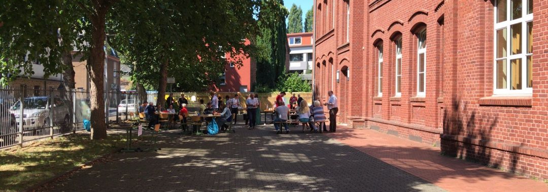 Bei der Schüler-Vollversammlung am letzten Schultag im Indoor-Raum gab es neben der feierlichen Zeugnis-Übergabe für die Entlass-Schüler auch einige Auszeichnungen für besondere Verdienste. Eingerahmt wurde dies wie immer von der Schulband, die zwei Stücke zum Besten gab. Neu war in diesem Jahr nach dem offiziellen Teil der Ausklang mit Grillen auf dem Schulhof. Hier konnten sich Schüler und Schülerinnen, Eltern, Lehrer und Lehrerinnen wie alle anderen Mitarbeiter und Gäste in lockerer Atmosphäre noch über das vergangene Schuljahr oder Ferien- und Zukunftspläne austauschen, was auch sehr gut angenommen wurde.