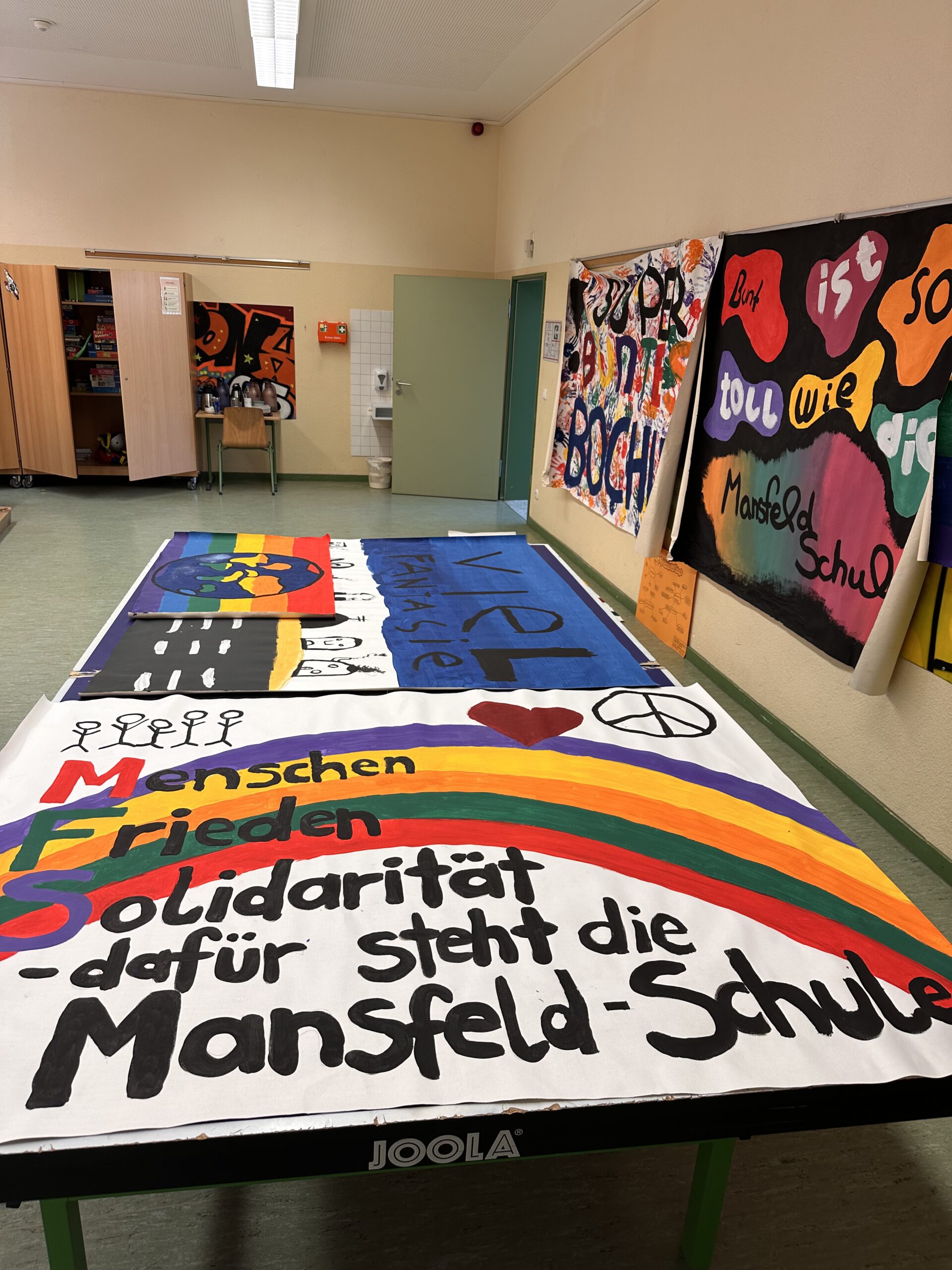 In der Woche vom 11. Juni bis zum 18. Juni 2025 stand die Mansfeld-Schule ganz im Zeichen von Kreativität, Gemeinschaft und Vielfalt: Unter dem Motto „Transparente bunt gestalten“ haben unsere Schülerinnen und Schüler farbenfrohe Kunstwerke entworfen, die ein starkes Zeichen für Toleranz, Offenheit und ein friedliches Miteinander setzen.